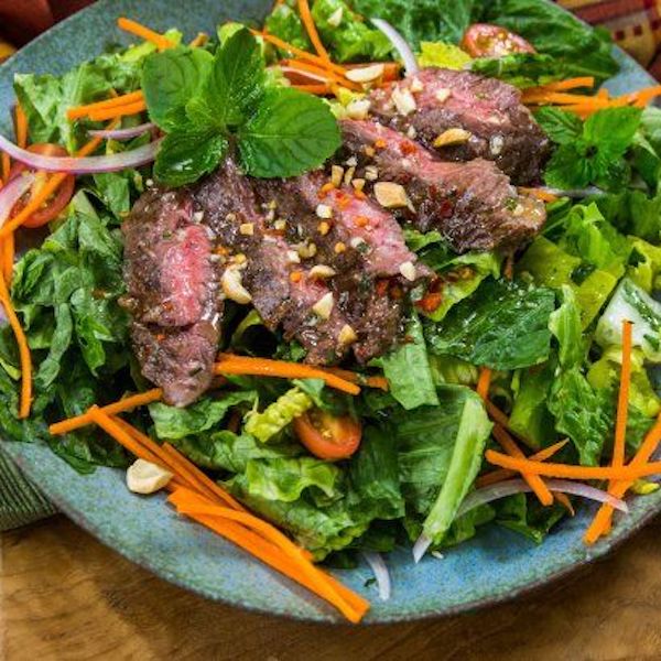 Chop up the lettuce, then toss with the dressing and meat until nicely blended.